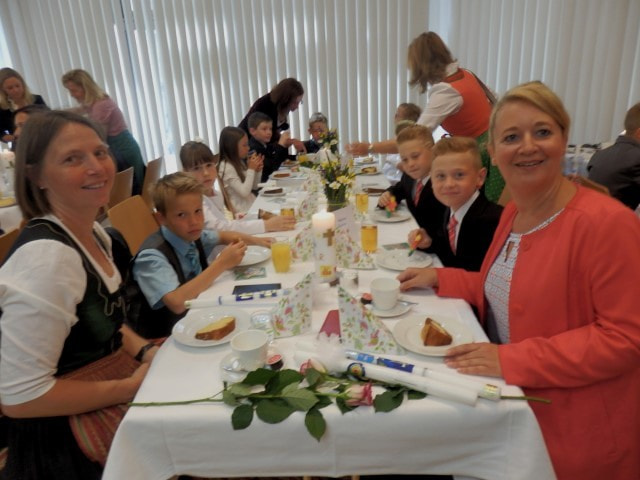 Stadtpfarrer Erich Weichselbaumer, Pastoralassistent Helmut Außerwöger, die Religionslehrerinnen Karin Bogner, Veronika Brandl und Nora Yolanda Lechner, die Tischeltern, die musikalische Umrahmung des Orchesters der Hauptschule Hartkirchen unter der Leitung von Gertraud Bogner und die Helferinnen und den Helfer für das anschließende Frühstück.